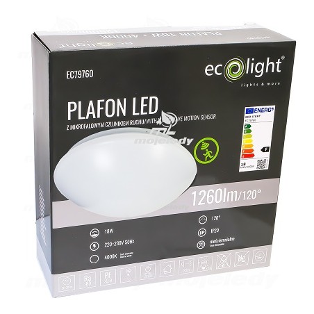 ✔️ PLAFON led czujnik MIKROFALOWY 255x80 18W 4000K 1260lm EC79760 eco light