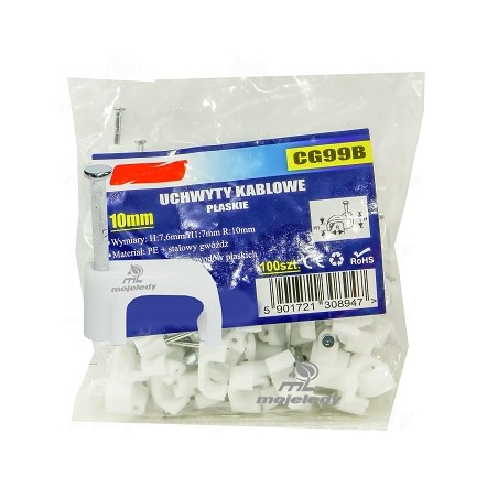 ➡️ Uchwyt kablowy płaski gwóźdz CG99B 10mm biały10/7 op.100szt